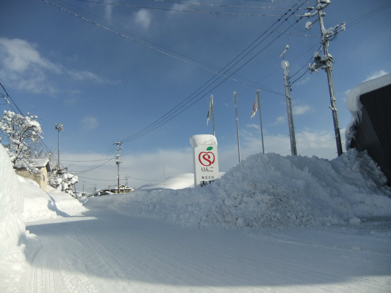 大雪の影響によるお届け遅延について 2026年01月31日 今日は良い天気なのですが、昨日の弘前市は12時間降雪量が37㎝と非常に多く、この大雪の影響で物流に遅れが生じております。 写真のとおり、車同士がすれ違えないくらい、どこもかしこも道幅が狭くなっております…。 集荷は受付けているそうですが配達指定日は不可のため、状況が緩和されるまで「生りんご」の販売はお休みしたいと思います。 ジュースは引き続き販売して参ります。いつもよりお届けにお時間はかかりそうですが、何卒よろしくお願い申し上げます。 «前 次» 最新情報
