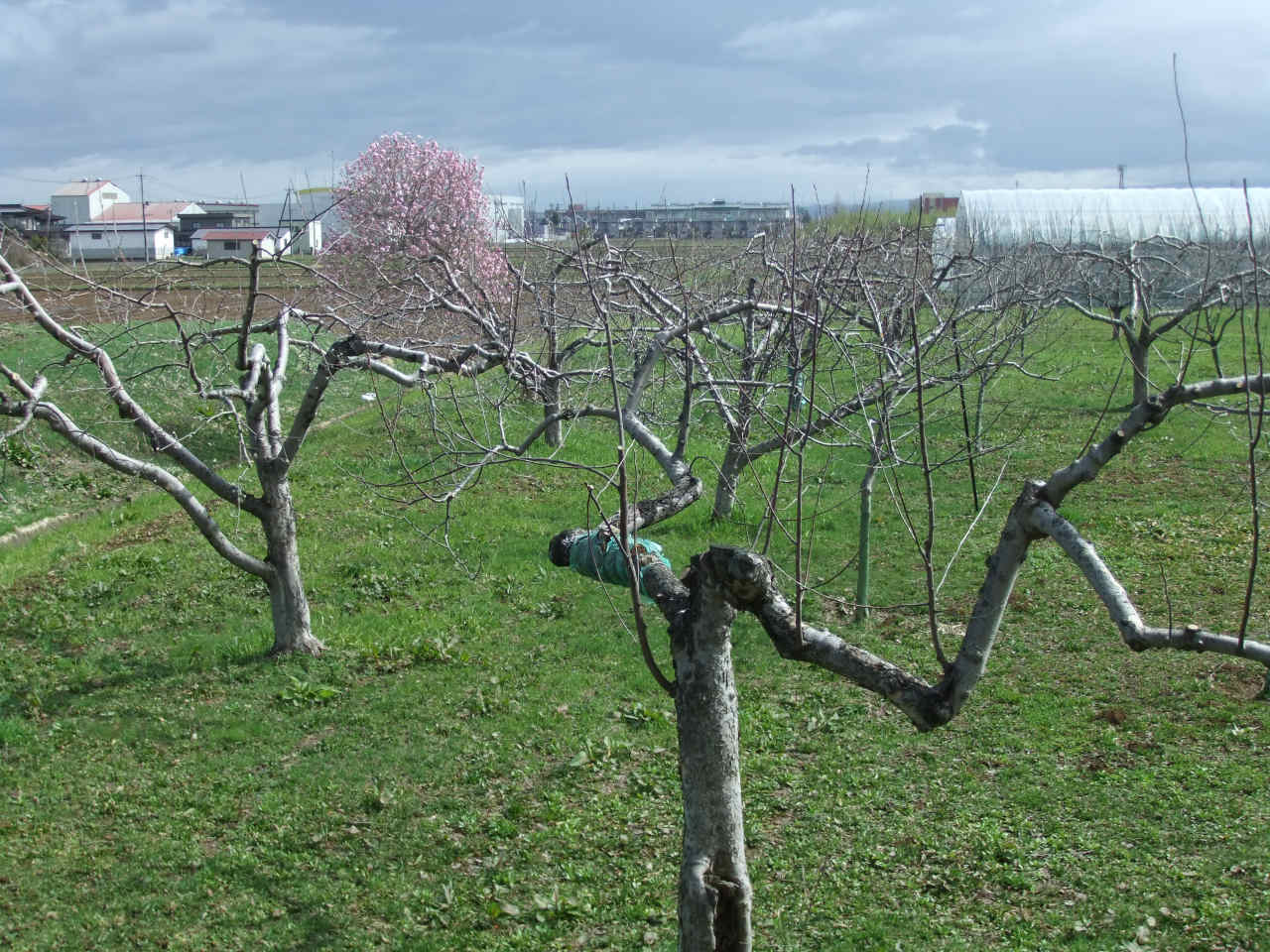 ↑写真は2026年4月11日現在、会社近所のりんご畑。小雨交じりの空ですが、どこからか野球の練習音が聞こえてきます。