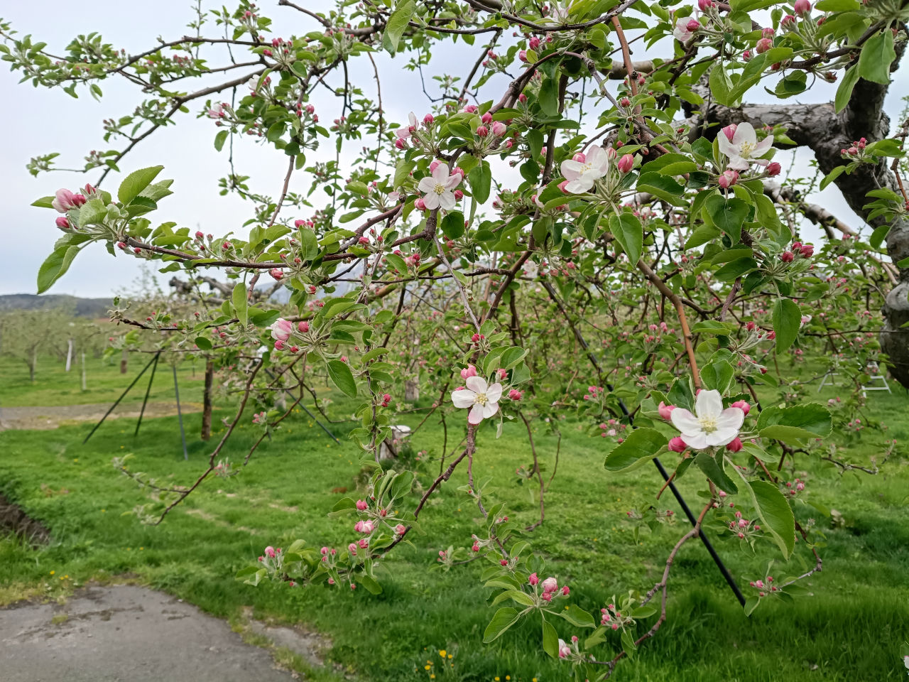 りんごの花、開花しています! 2026年04月28日 写真は最も早く咲く「つがる」の木です。この後、ジョナ、王林、ふじ等続々と開花します。 ゴールデンウイークは、アップルロードのドライブおすすめです! 次» 最新情報